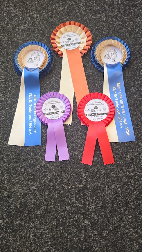 die nächsten Ausstellungen stehen wieder an, wir düsen zur Spezialausstellung für Terrier der OG Bonn. Die erste Ausstellung für Sawasdee Choco Crispy, Sawasdee Dreamcatcher und Sawasdee Belladonna. Die kleine Bella holte Platz 1 für sich, Coco konnte den 2ten Platz für sich in Anspruch nehmen und Dreamcatcher belegte den 3ten Platz in ihrer Klasse.